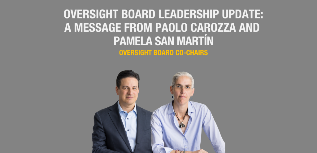 Oversight Board Leadership Update